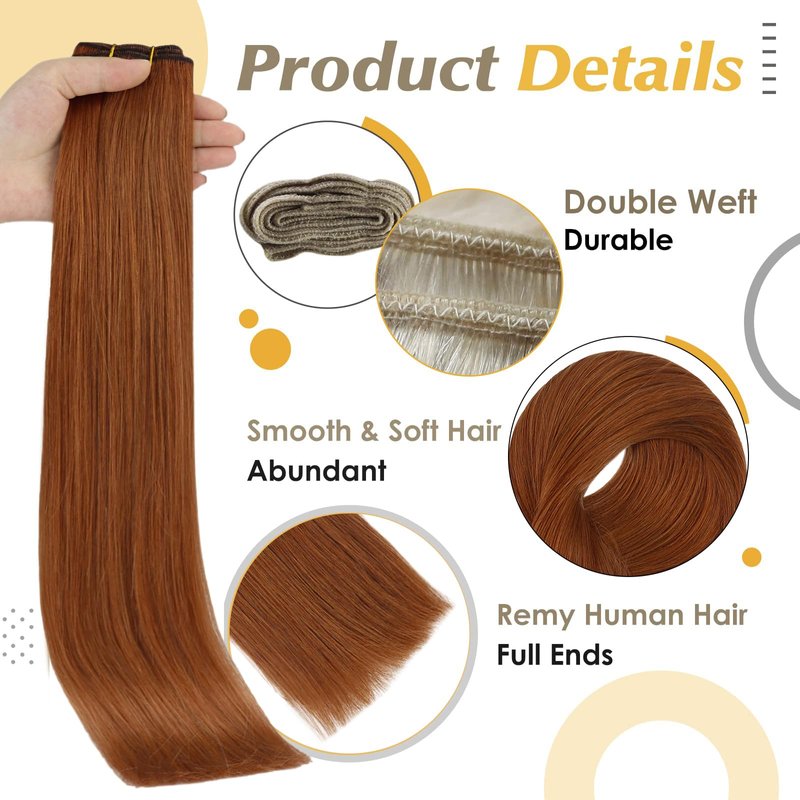 Full Shine Weft Hair Extensions Human Hair Sew In Human Hair Extensions 22 Inch Silky Hair Copper Extensions Sew In #550 Auburn Extensions For Women Bundles Human Hair Remy Straight Hair Weft 105G