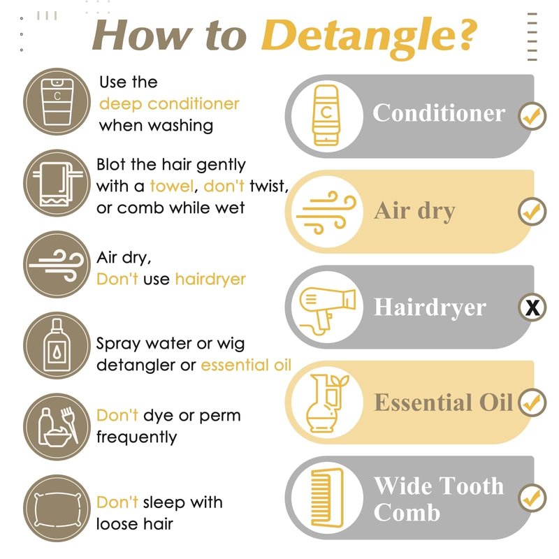 - 【Hair Care Tips & Increase life of hair extensions】Properly care to maintain their smoothness and shine. We recommend wash hair extensions, use a small amount of mild shampoo and hair conditioner, wash with warm water, please rub your hair gently, and allow them to air drying. Once you have put on the hair extensions, it is advisable to comb your hair and tie it up into a loose ponytail or braid before sleeping to avoid tangling.