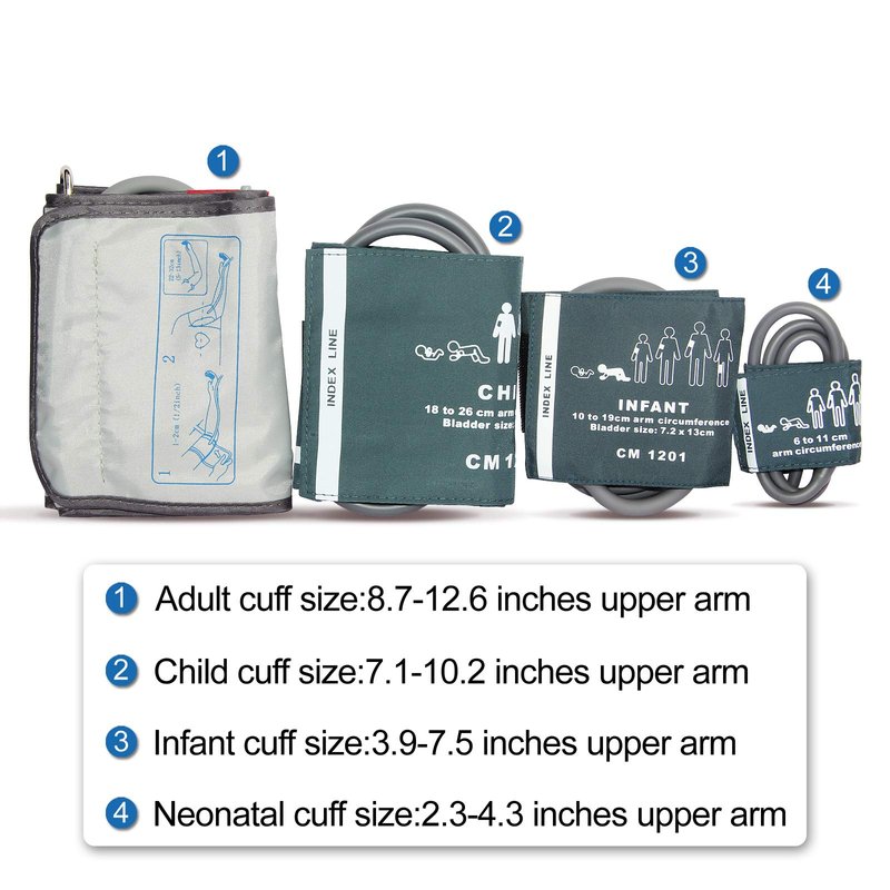 - Contents in the package:One main unit CONTEC08A monitor,USB cable,download PC software,Four cuffs(Adult,pediatric,infant,neonatal),user manual