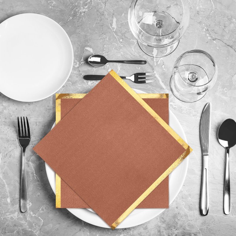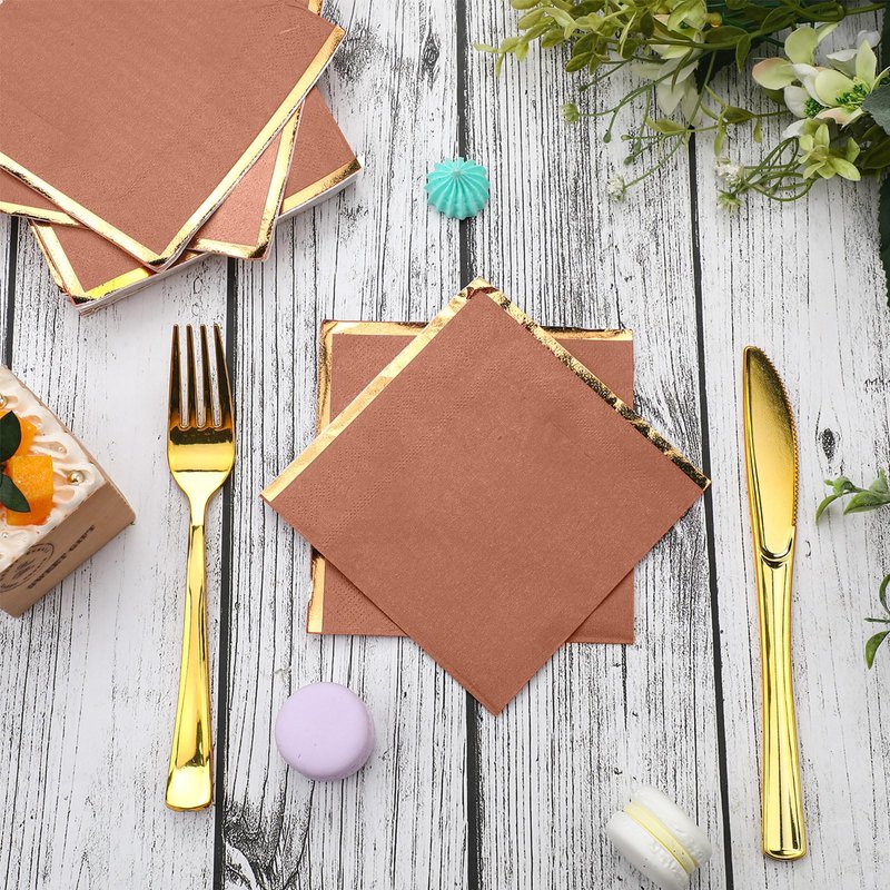 - Elegant Design: with their golden edges and elegant terracotta color, guests will like these disposable napkins for wedding; They can add elegance and charm to celebratory parties such as baby showers, weddings, Thanksgiving, and more, making them an ideal addition to many tables settings
