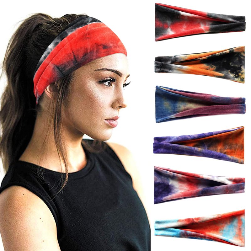 FULZTEY Headbands For Women Fashion Tie Dye Hairband Boho Headwraps Wide Hair Bands Soft Bandanas Trendy Head Scarf Elastic Yoga Workout Sweat Band Non Slip Turban Cute Hair Accessories 6 Pack