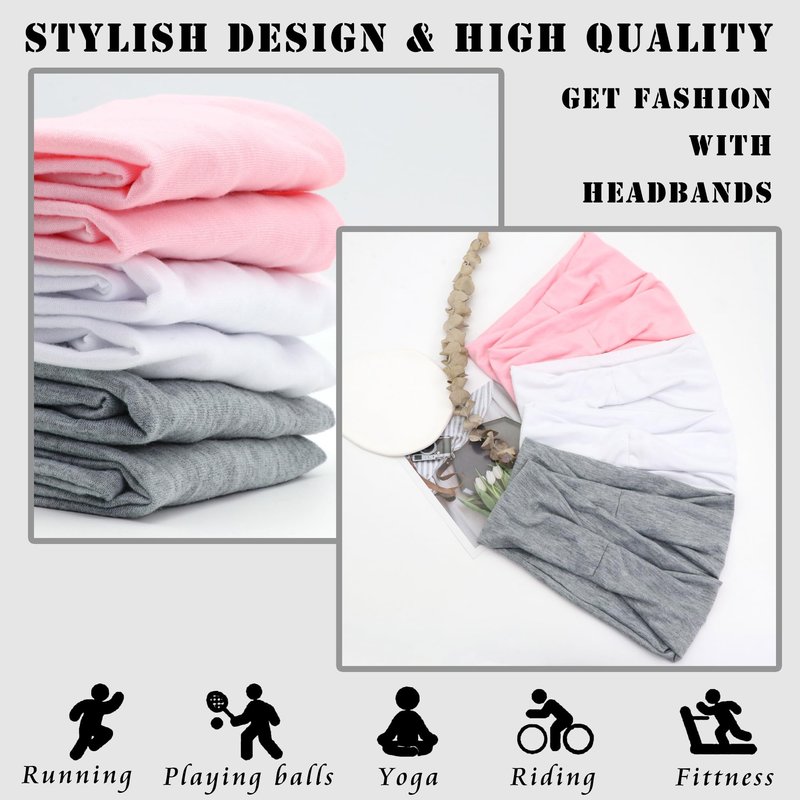 - 💗Fashion Style - Hair wraps headbands have 3 classic colors, including white, grey and pink. Bandanas for women with 3 different colors show your different styles! Non slip headband for women keeps your hair tidy and orderly. You can enjoy the women's fashion headbands every moment.