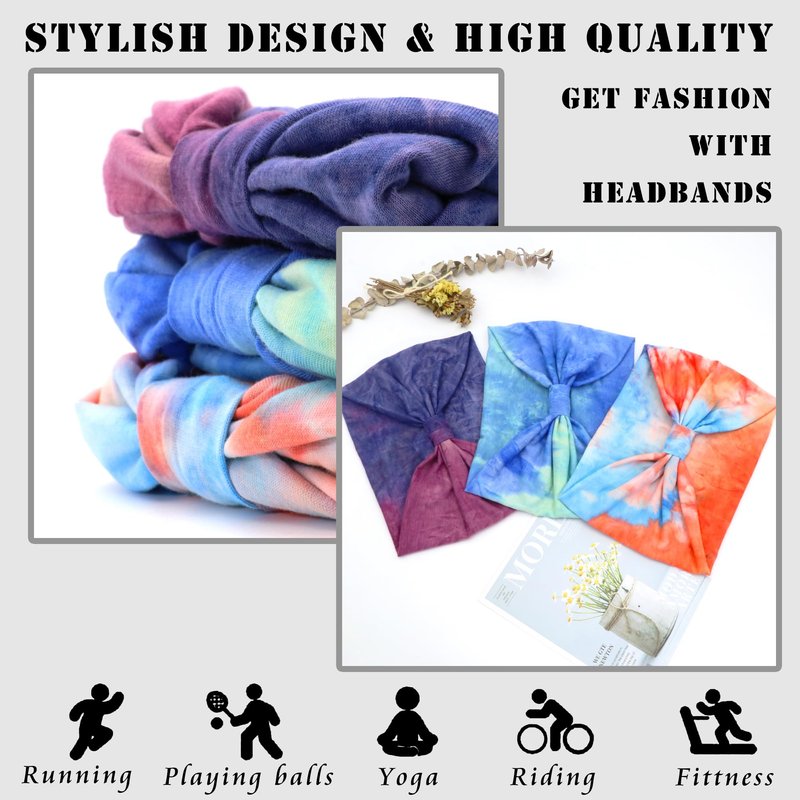 - Fashion Tie Dye:Fashion Headbands Are Features With Colorful Tie Dyed Designs.Tie Dye Head Scarves Have 3 Vibrant Colors, Including Blue, Purple And Orange.The Different Color Shows Your Different Hairstyle And Match Your Different Outfits.No Matter Whether You Are On A Good Or Bad Hair Day,The Cute Headband Is Your Best Choice For Presenting Your Beauty