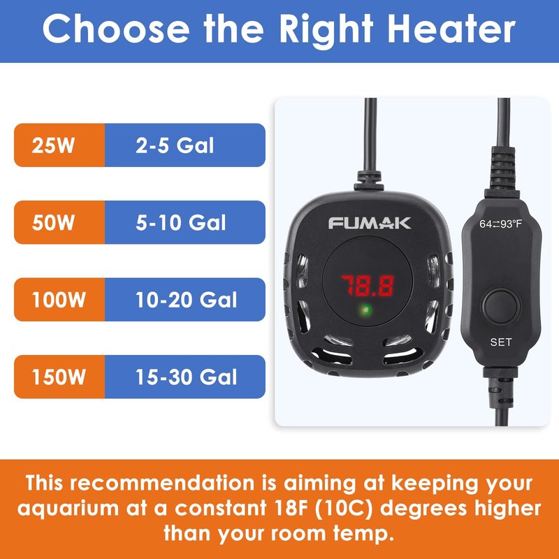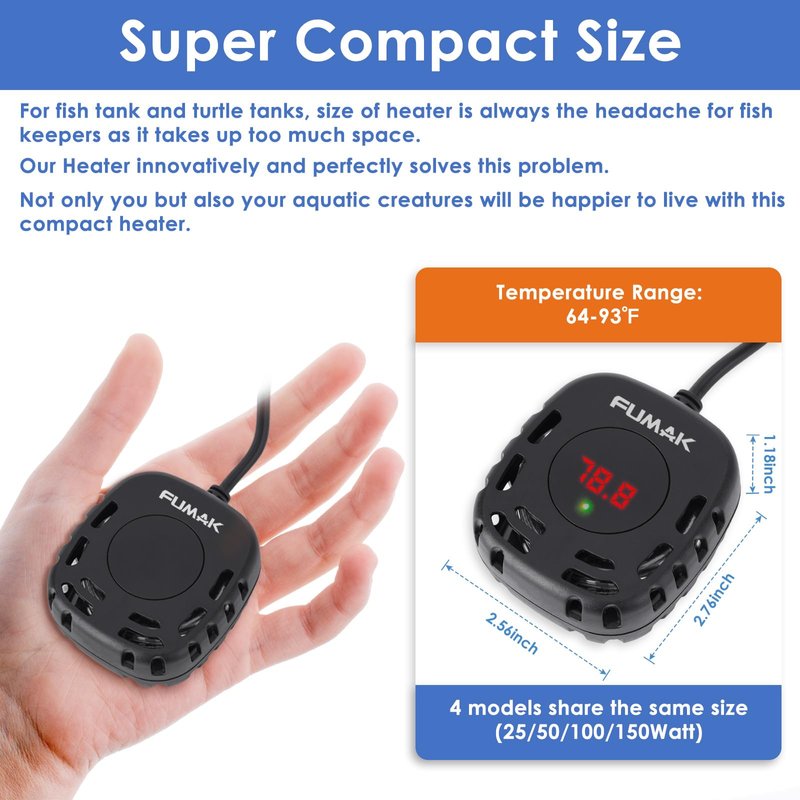 FUMAK Mini Aquarium Heater Adjustable 25W Submersible Fish Tank Heater with LED Digital Display, Turtle Tank Heater Small Aquarium Heater, Ideal for 2-5 Gallons Tanks