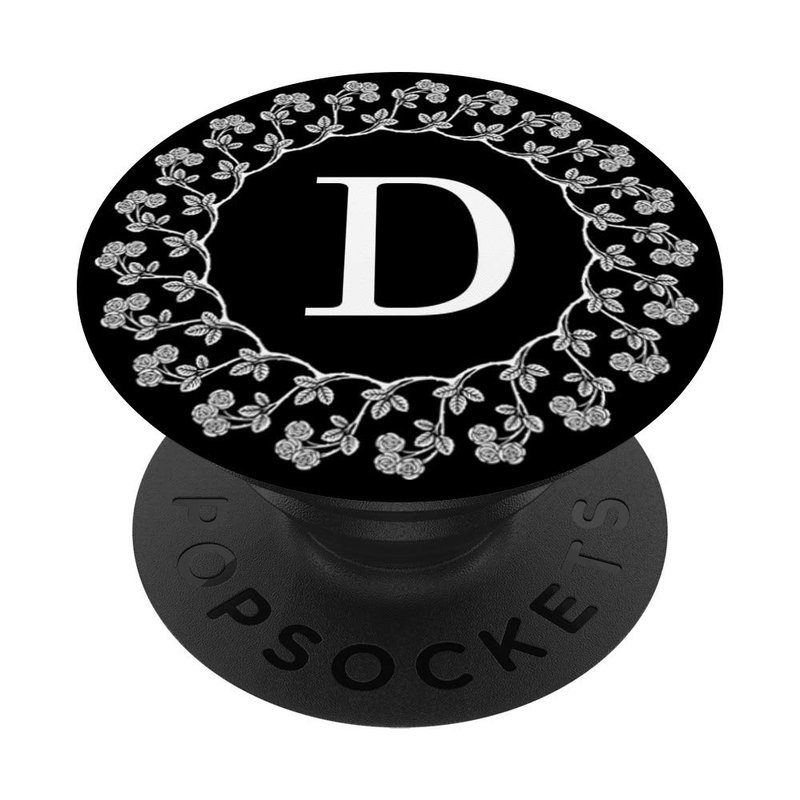 Fun Cell Phone Pop Up Holder,Cute White Floral Rose Letter D PopSockets Grip and Stand for Phones and Tablets