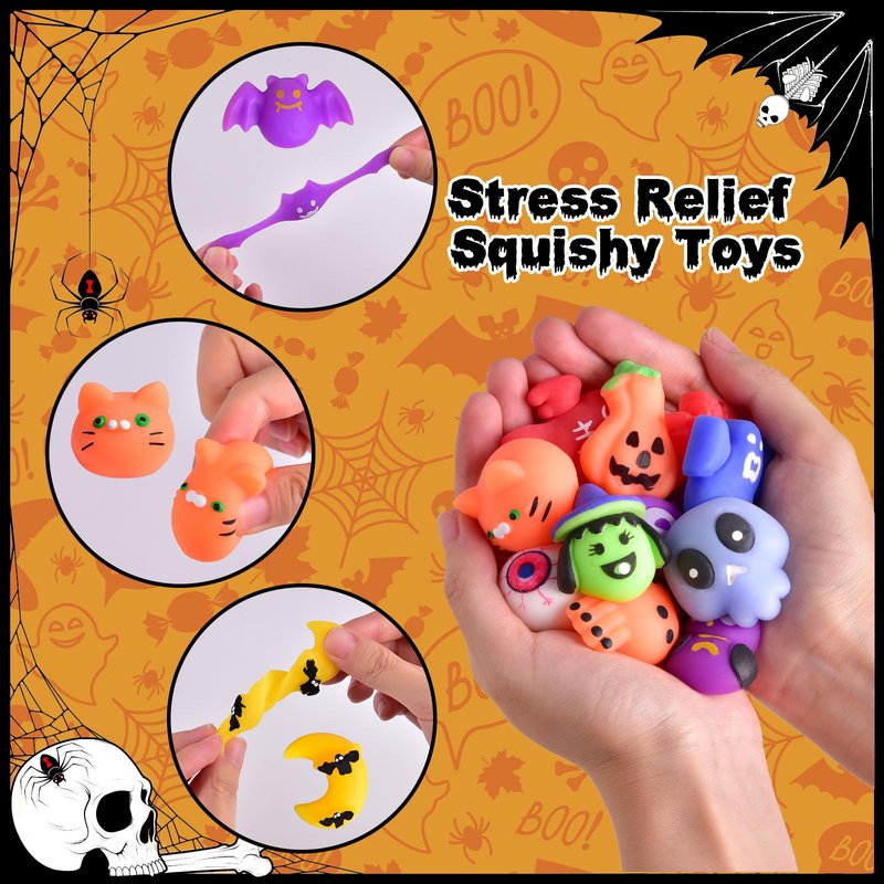 Including over 50 assorted designed halloween squishy toys. Make sure to bring the fun and spooky vibes this season alongside this set of exciting halloween goodie bags fillers and trick or treat party favors. Each of the mini squishies are designed with crowd's favorites halloween elements that children will surely love. Soft, stretchy and easy-squeeze technology are designed into every Halloween squishy. Simply press down your thumb anywhere on the toy and feel the relaxation sweep over you. These mini fidget toys are going to be fun and therapeutic for everyone involved.