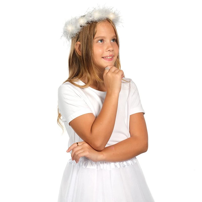 - ANGELIC HALO HEADBAND: Illuminate your attire with this white feathered LED angel halo headpiece. Perfect for children, teens, and adults, it's an essential accessory for white angel costumes, women and men costumes, or any angelic ensemble. Ideal for costume parties, cosplay events, and Halloween.