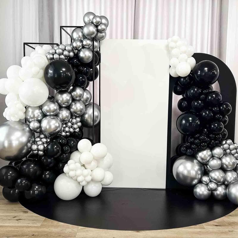 - VARIOUS OCCASIONS - The black and silver balloons decoration is ideal for birthday parties for both girls and boys, baby showers, weddings, anniversaries, graduations, 2024 party decorations, engagements, black-tie events, masquerade balls, and hen party decorations. The silver black helium balloons can serve as a focal point or a decorative element to enhance the atmosphere of any party or event.