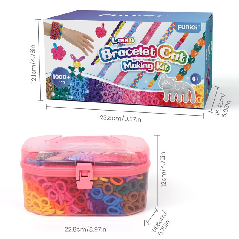 FUNiOi Kids Art and Craft Kit, Rubber Band Bracelet Make Toy, Cat Weaving Comb, 1000+ Colorful Hair Ties, DIY, Organizer Case, Gift for Girls 7-12 Years