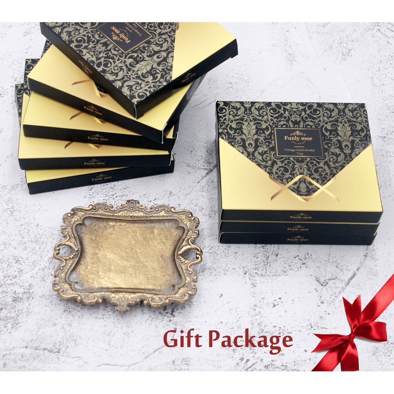 Funly mee Small Antique Trinket Dish Vintage Gold Jewelry Tray, Ring Holder
