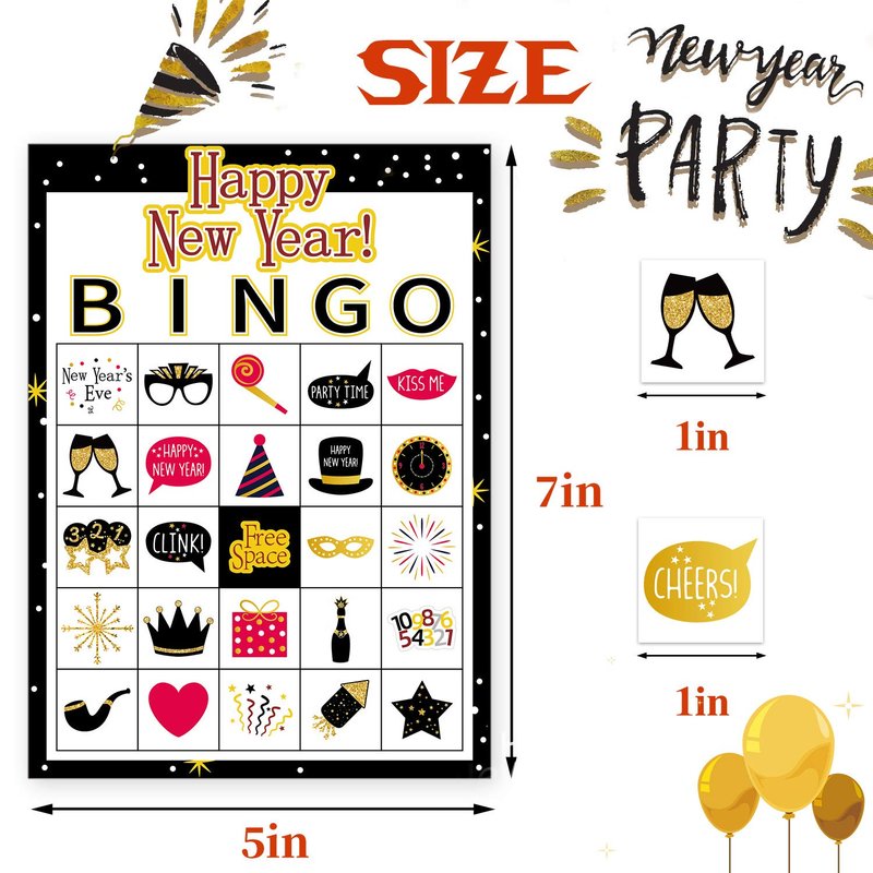 - LARGER NEW YEAR GAMES FOR PARTY PACKAGE: Happy new year game bingo includes 24 unique kids bingo player cards, 385 marking chips, and 2 caller chips.Support numbers to playing ,great family and even mommy time game with your kiddo.