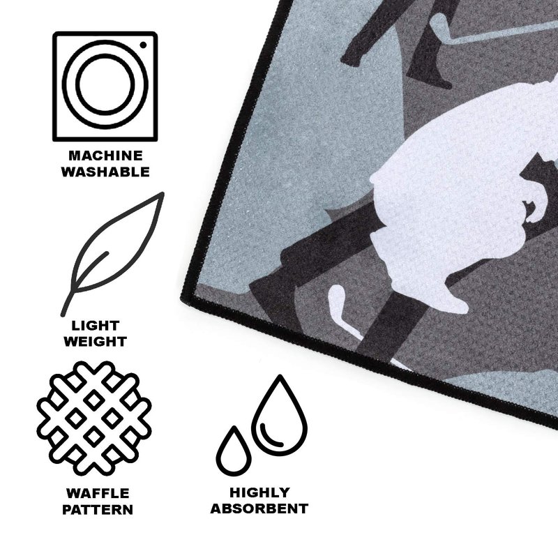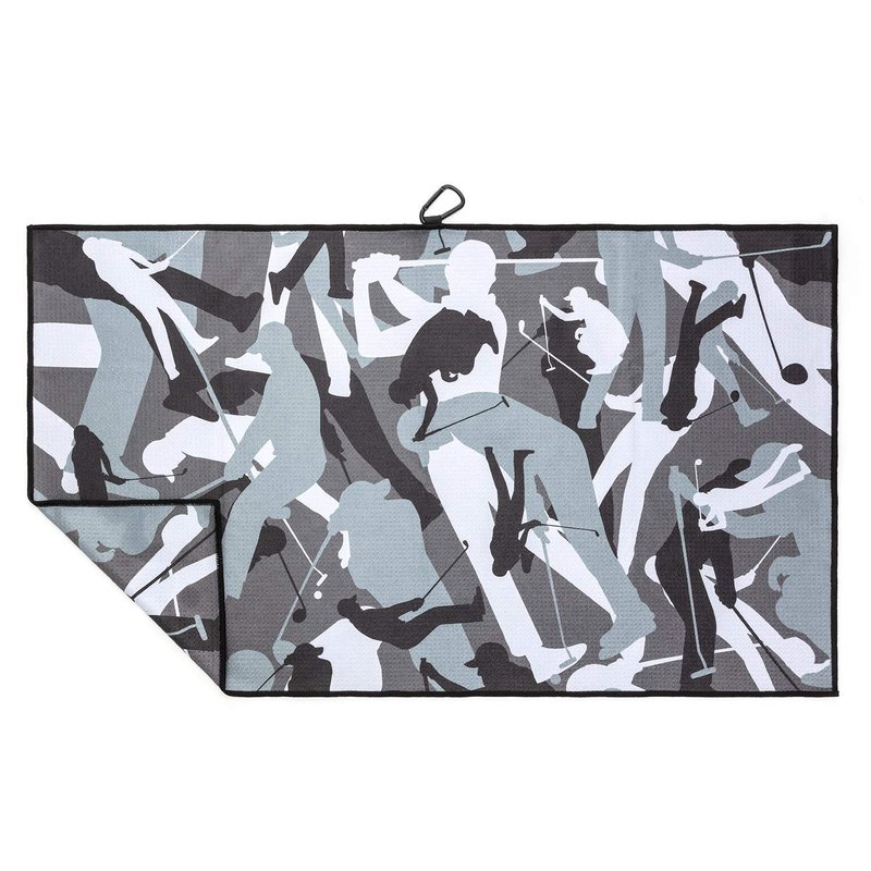Funny Camo Golf Towel for Men - Sturdy Carabiner Clips to Bag - Absorbent Microfiber Fabric - Look Closer to See Graphic Golfers Hidden in The Camo (Gray)