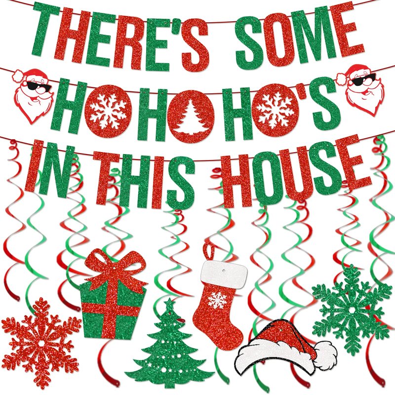 - 【Specially designed for christmas decorations】 The green and red shiny "theres some ho ho hos in this house" banner, including the unique santa logo, christmas theme letter design, creates happy scene for the party and makes you more Close to the atmosphere of a christmas decorations. This is a great choice for christmas decorations banner.