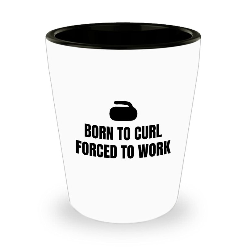 Funny Curling Shot Glass - Curling Gifts - Curler Present - Curling Sport - Born To Curl Forced To Work