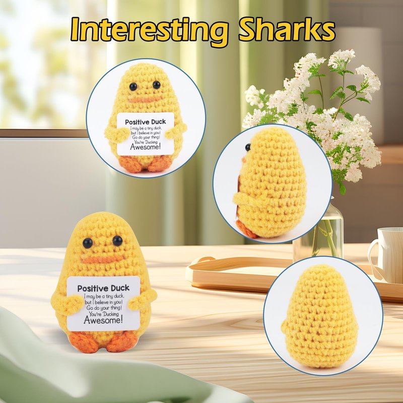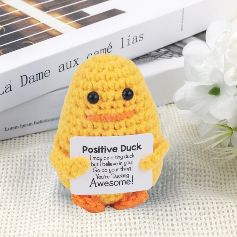 - FUNNY STUFF:Our funny positive duck knitted doll is very cute, and the words in the card are inspirational. Whether you're a lover of life, or just plain frustrated, having a piece of positive encouragement stuff, will make you feel better about yourself. Whether you love life, or you're just a little down in the dumps with this positive encouragement stuff, you'll be cheered up. new beginning gifts for coworkers colleagues women men.duck desk office decor for coworkers women employees,emotional support nuggets partner