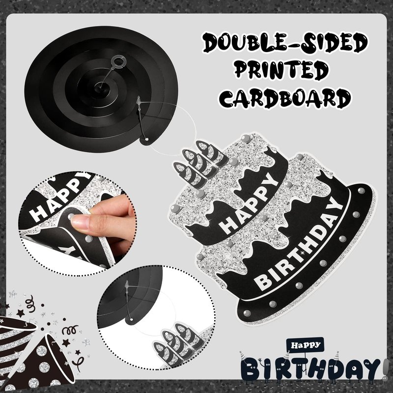 - Quality Material: these black silver happy birthday ceilings are made with metal foil and quality cardboard, the cardboard is double sided printed, does not bend easily, sturdy and durable enough to be reused many times