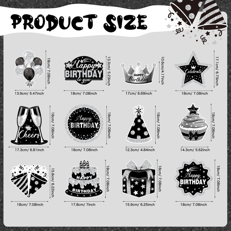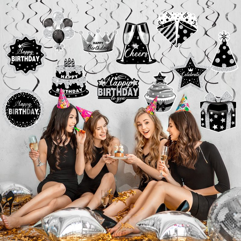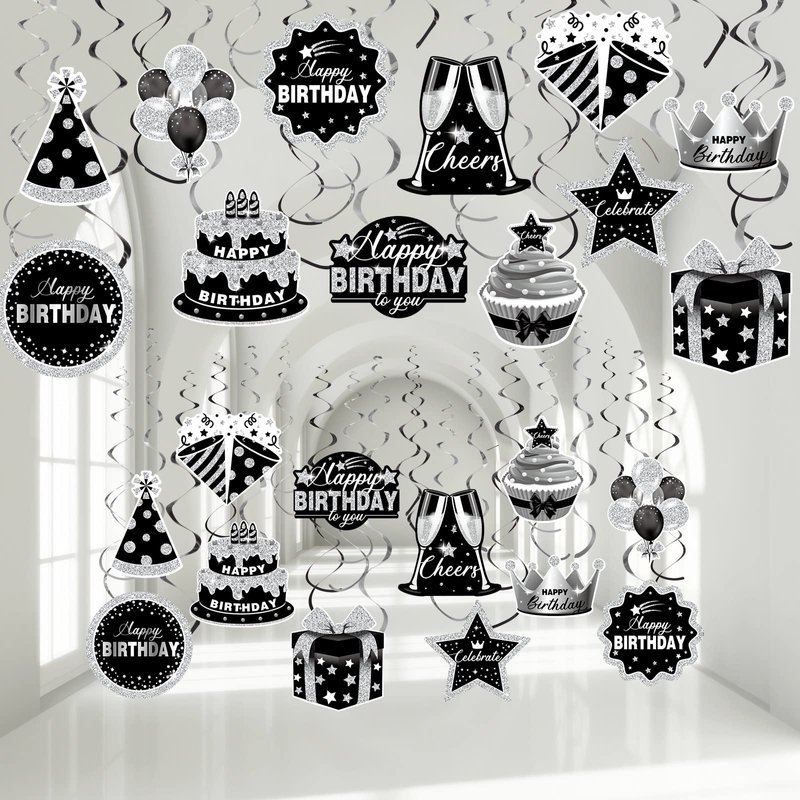 - Great Decorating Bundle: you'll get 30 pieces black and silver hanging swirls, including 22 pieces birthday cutouts in 11 styles, 2 pieces of each, and 8 pieces hanging swirls in silver and black, sufficient quantity meets your needs that will make your family have an unforgettable birthday