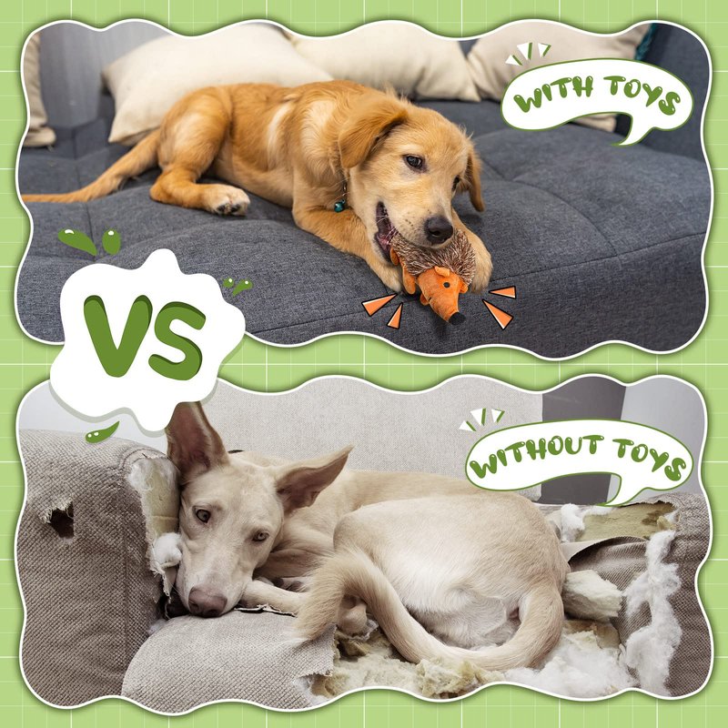 - Interesting Squeaker: dogs are very sensitive to sounds; The dog stuffed animals chew toy has a built in squeak that will draw their attention and curiosity, and it is nice for solo and interactive games, the simulated hedgehog shape is sure to add extra fun to your dog's playtime