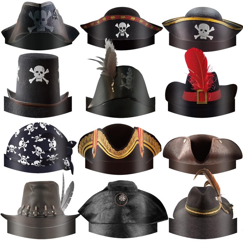 - Interesting Design: 12 different pirate hats, retro and realistic patterns such as white skull, triangle hat, triangle hat, red hood, skull bandana, etc., combined with bright colors and parrot design, in line with the identity of pirates