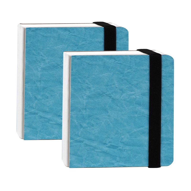 Funto Watercolor Journal 2-Pack, 3.9x3.9, 44 Pages Each,Cold-Pressed 100% Cotton,PU Leather Blue Hard Cover, Removable Elastic Band, Art Supplies for Watercolor & Mixed Media