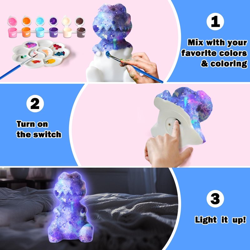 - 🦖【Fun for All Ages, Ideal Arts and Crafts Gift for Kids and Adults】This DIY dinosaur lamp can be painted with Novel Design Style anytime you wish, so you can customize it for Halloween, Christmas, Children's Day and other favored occasions. What a perfect customizable gift idea for the arts & crafts lovers in your life! Great for arts and crafts for kids ages 3+ & adults & school projects.