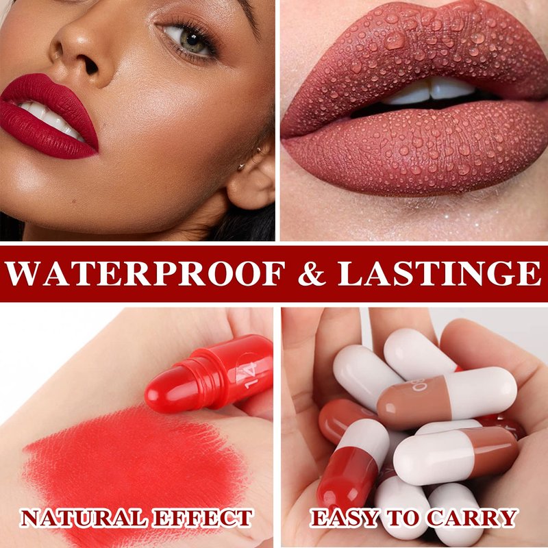- 🎁【Capsule Pills Matte Lipstick Set】Mini capsule makeup lipstick pills set contains 18 vibrant matte colors that can meet the needs of various occasions, such as performance parties, weddings, bars, leisure, salons, schools, offices, etc.