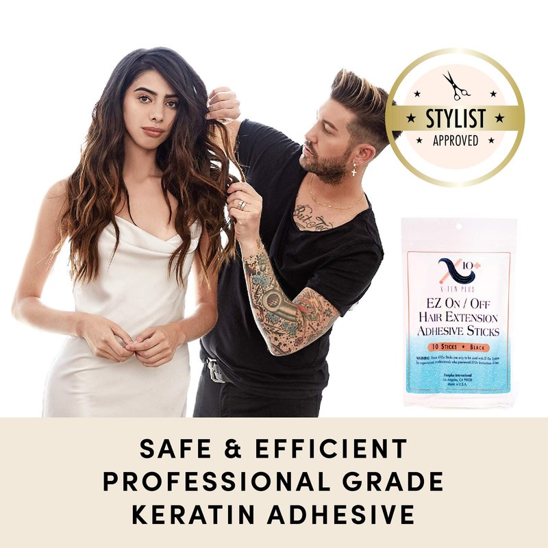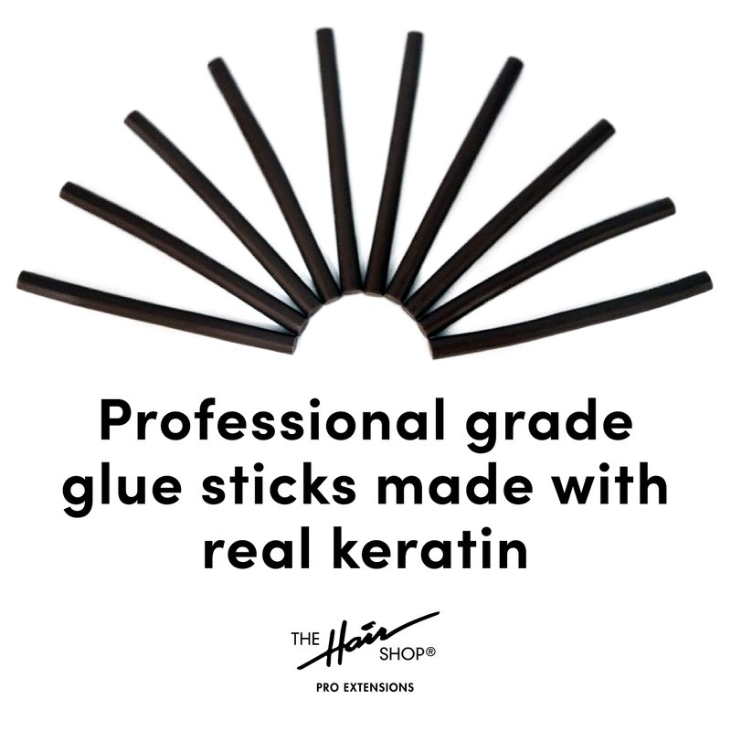 The Hair Shop are lovers of the fusion hair extension method. They are invisible and last longer than any other extension method that we offer. We've been selling our adhesive sticks for well over a decade. These Keratin Glue Sticks will work for most glue guns and form an incredibly strong bond. Our X10+ Adhesive Sticks are made with Keratin Protein which is safe for use on the hair. We provide 10 sticks per pack which should be enough for most full head applications. We also provide different colors such as Black, Brown, and Blonde which melt safely at 270°F - 340°F. In addition to providing the highest quality 100% remy human hair extensions on the market, The Hair Shop also provides the tools and hair care that are necessary to maintain healthy extensions, wigs, and hairpieces. As a USA-based company with over 30 years experience in the industry, The Hair Shop is a name Professionals can trust. We only use the best quality to ensure satisfaction to all of our customers.