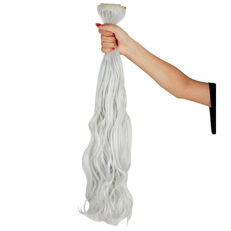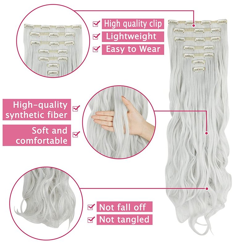 FUTATA 7Pcs 16 Clips 24 Inch Wavy Curly Full Head Clip in on Double Weft Hair Extensions for Women Girls, Silver Grey