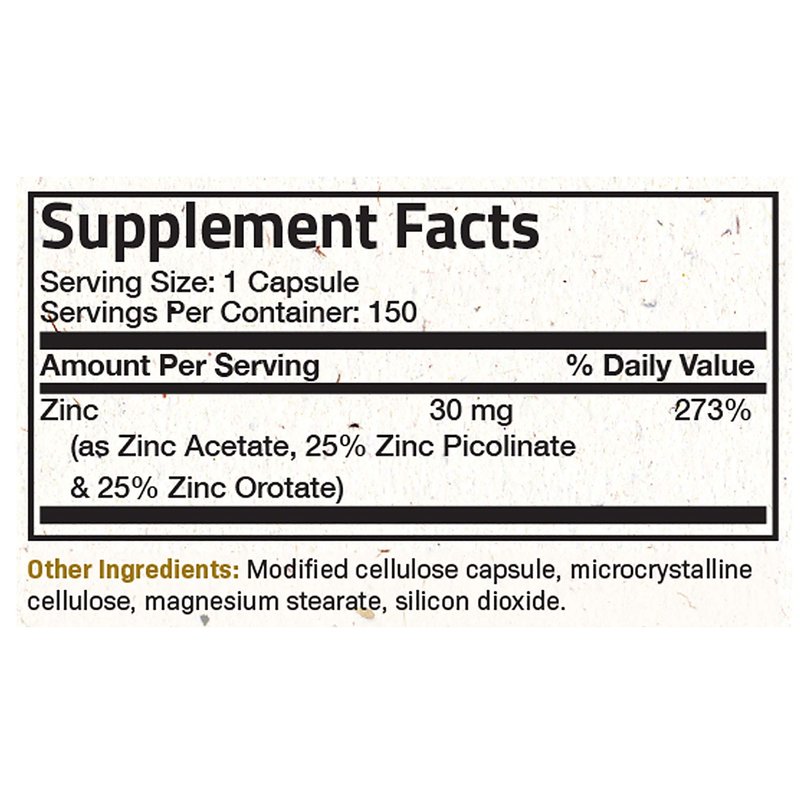 Futurebiotics Zinc Triple Action 30mg Key Nutrient Blend Immune Support Zinc Supplement with Zinc Acetate, Picolinate & Orotate - Immune, Antioxidant & Skin Health Support - 150 Vegetarian Capsules