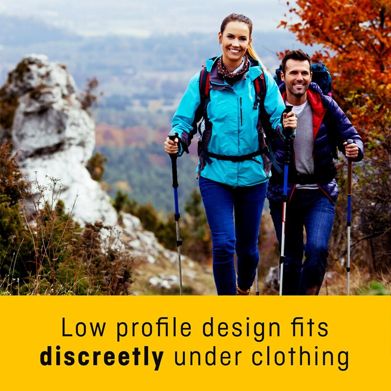 - Low-profile silhouette fits discreetly under clothing