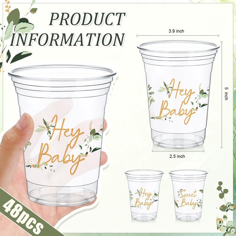 - Complete Set: you will get 48 pcs 16 oz eucalyptus baby shower cups in green and gold design; The generous quantity caters to your green baby shower party and gets rid of the hassle of buying supplies separately