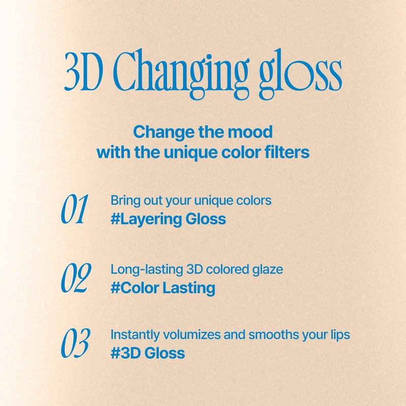 - [Mood Changer] Layering gloss that will highlight your unique mood! Freely layer the texture to create different daily moods just for you.