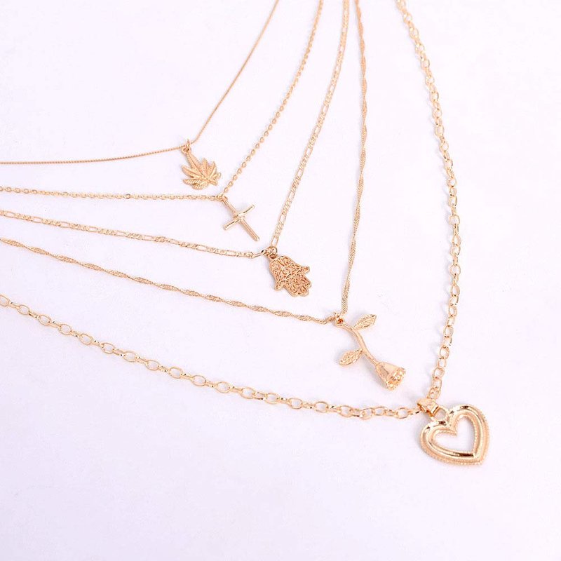 fxmimior Boho Gold Sequins Rose Flower Cross Layered Necklace Dainty Pearls Chain Cross Pendant Long Necklaces Jewelry for Women