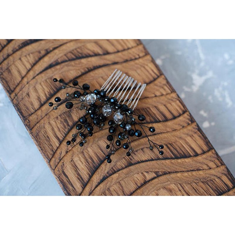 FXmimior Bridal Hair Accessories Black Hair Comb Gothic Wedding Hair Accessory Black Headpiece Evening Hair Adornment Prom Beaded Bridesmaid gift