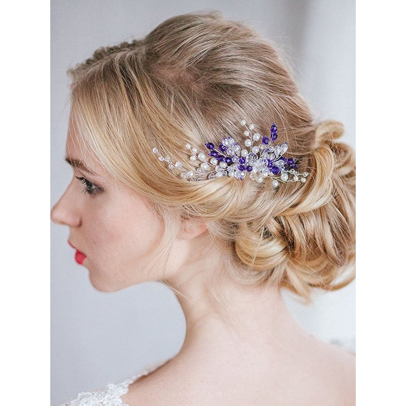 fxmimior Bridal Wedding Vintage Blue Crystal Rhinestone Vintage Hair Comb Hair Accessories Women Hair Jewelry