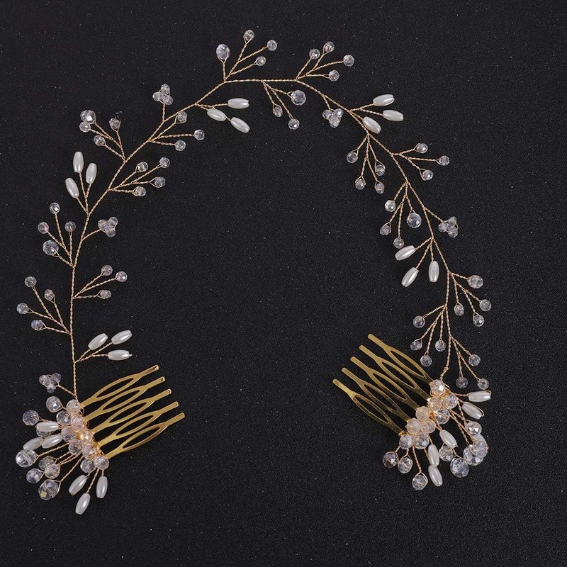 fxmimior Bride Hair Accessories Crystal Hair Vine Headband Wedding Hair Comb Evening Party Hair Piece (gold)…