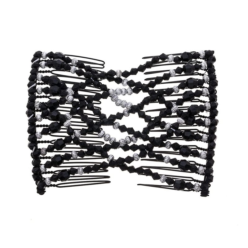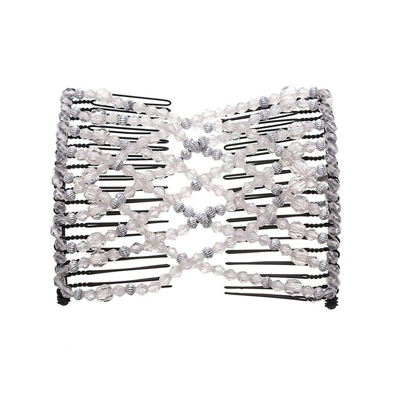 FXQHAN Women Magic Hair Comb Bead Stretchy Hair Combs Double Slide Metal multifunctional Comb Clip Hairpins For women-4pcs