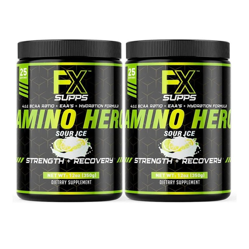 FXSUPPS Amino Hero Sour Ice Flavor (50 Servings) | Post-Workout Recovery Drink for Men and Women | Energy Powder Mix with BCAA, EAA, and Electrolytes | Promotes Endurance and Healthy Muscles - 2 Pack