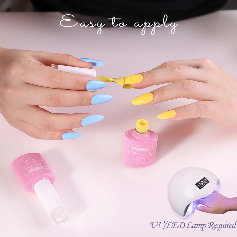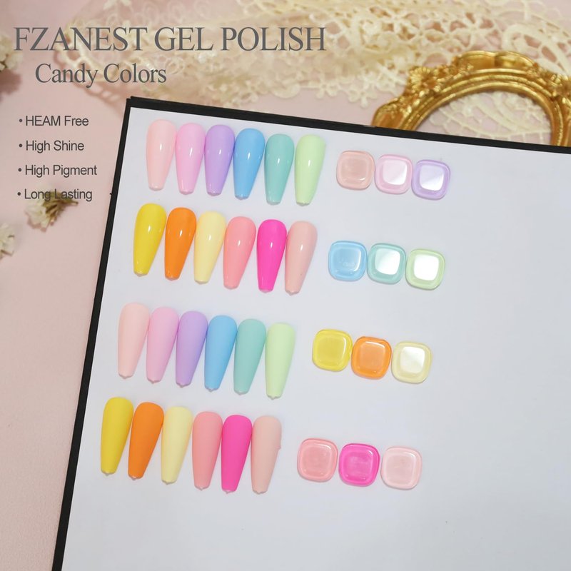 FZANEST Hema Free Gel Nail Polish Set,12 * 7.5ml Spring Summer Macaron Candy Colors UV Gel Polish Kit,Light Soft Nude Pink Green Blue Purple Yellow Gel Nail Art Manicure