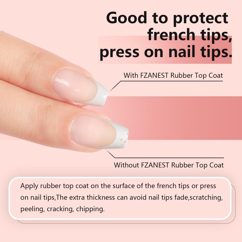 - 3.Good to protect french tips,press on nail tips.Apply rubber top coat on the surface of the french tips or press on nail tips,The extra thickness can avoid nail tips fade,scratching, peeling, cracking, chipping.Extend the longevity of the nail tips art.