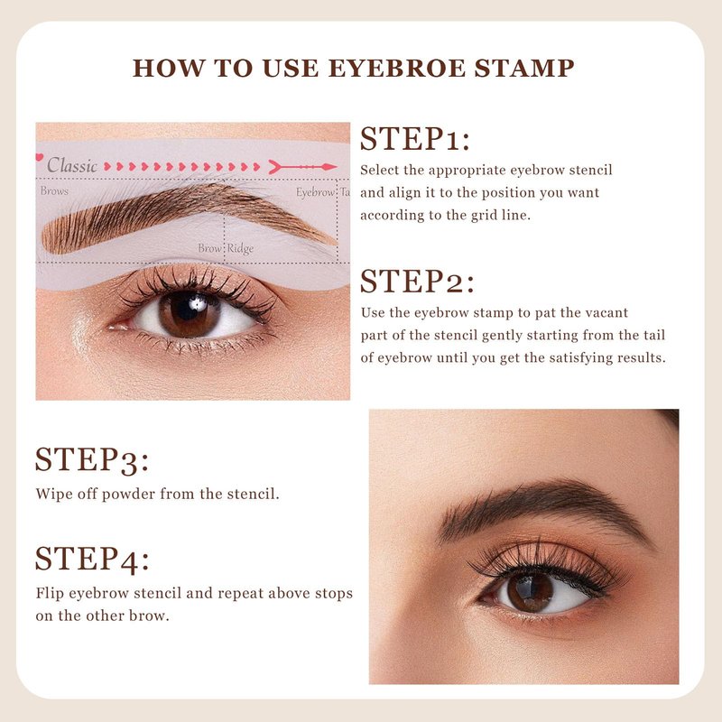 - ✔️EYEBROW STENCIL KIT: Our eyebrow stamp stencil kit includes a unique eyebrow stamp, 2 brow brushes and 10 different stencils, easily create natural and attractive brows without any skills.