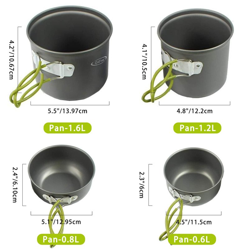 G4Free 2/4/13 PCS Camping Cookware Mess Kit Hiking Backpacking Picnic Cooking Bowl Non Stick Pot Knife Spoon Set (4PCS)