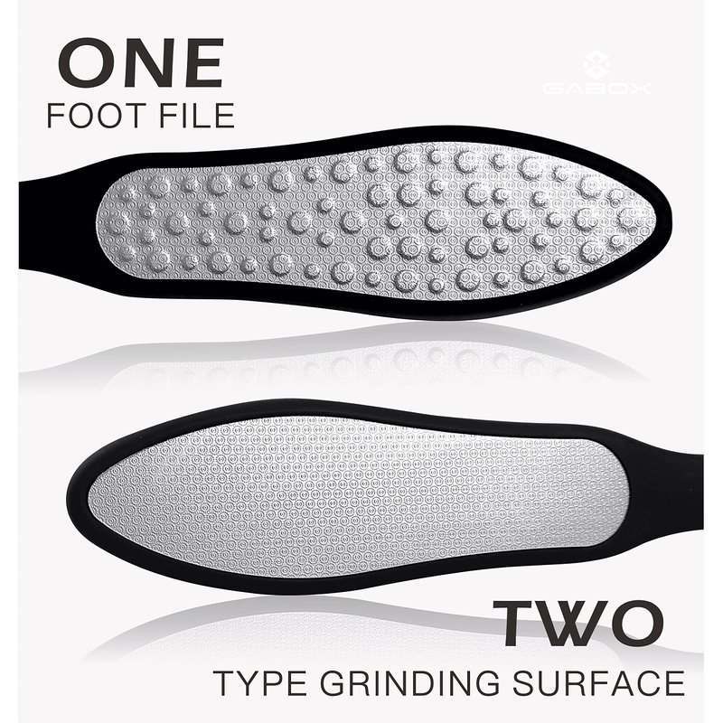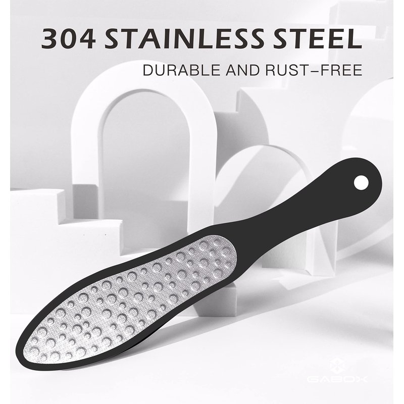 GABOX Double Sided Stainless Steel Professional Foot File - Callus Remover for Feet - Heel Scrubber Dead Skin Exfoliator - Feet SPA Pedicure Tool for Men & Women - Removedor de Callos en Los Pies