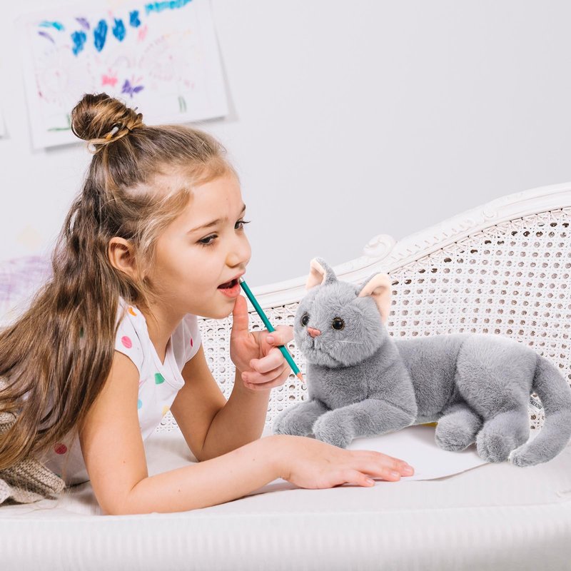 Gadpiparty Stuffed Cats Plush Cat Doll, Realistic Soft Plush Cat Toy for Kids Adults Boys and Girls, Stuffed Animals Cat Doll for Kids Birthday (Grey, 12 Inch) Cat Stuffed Animals