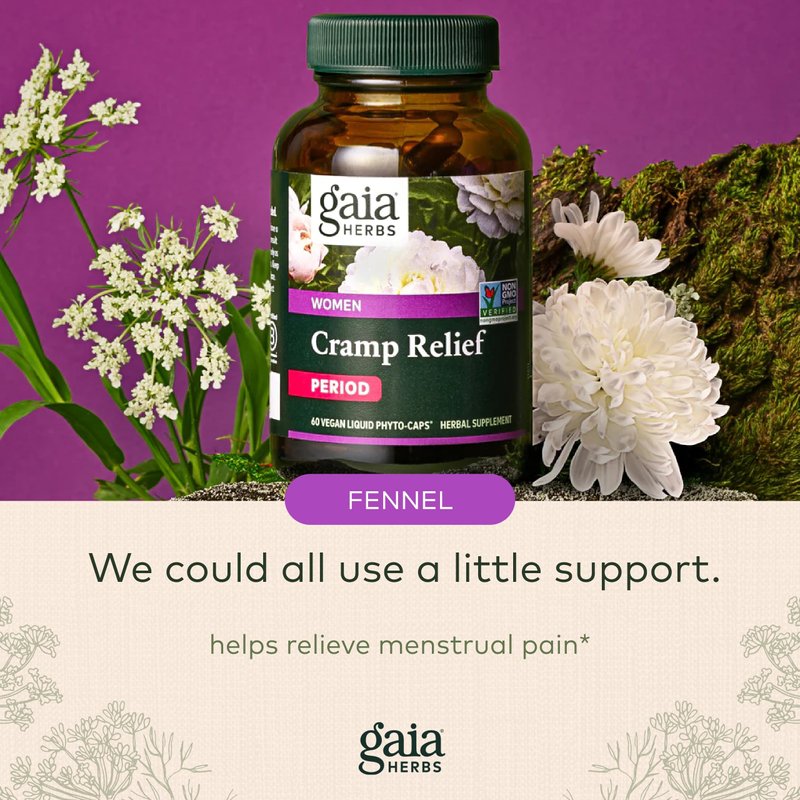 - Hormonal Balance: Gaia Herbs' Cramp Relief uses natural ingredients to help relax the uterus and support hormone balance*