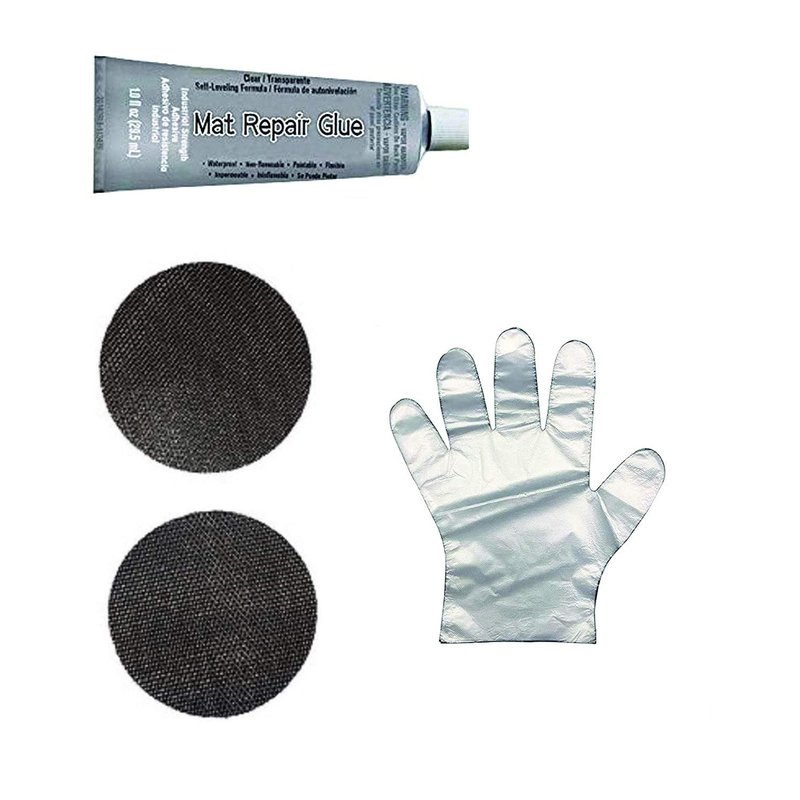 - 1 Pack kit Included: 2 mat patch (top & bottom) - 4” round diameter,1 glove and 1 marine industrial grade glue 0.50 fl oz tube.