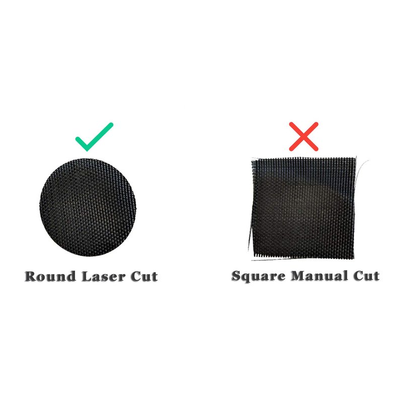 - Each round patch is laser cut, not scissor cut, to maintain integrity of the mat thread material.