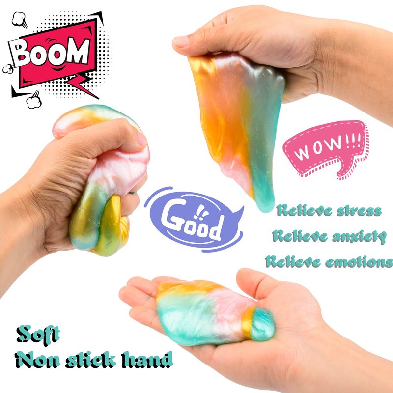 - SAFTY SLIME: The slime is made of ECO material, so there is no harm to the skin. CAN NOT EAT! Children under the age of 6 are recommended to play with an adult.