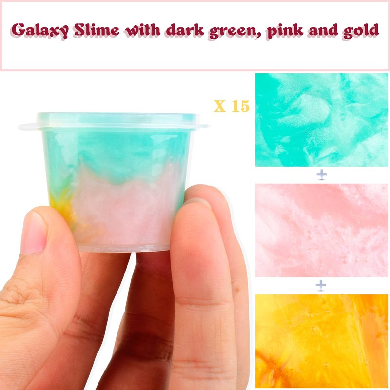- The Quantity: There are 15 packs soft and wet galaxy slimes in the package which we can play with our partners, and we also can play the slime at home, in school, in party and more.