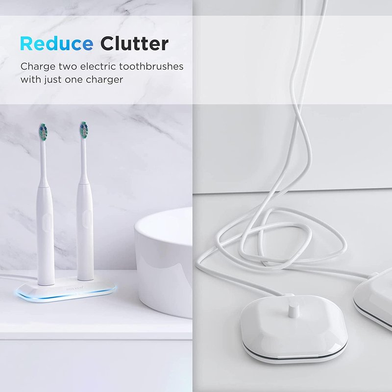 - One charging base instead of two! Our dual toothbrush charger allows you to charge two toothbrushes AquaSonic toothbrushes simultaneously.